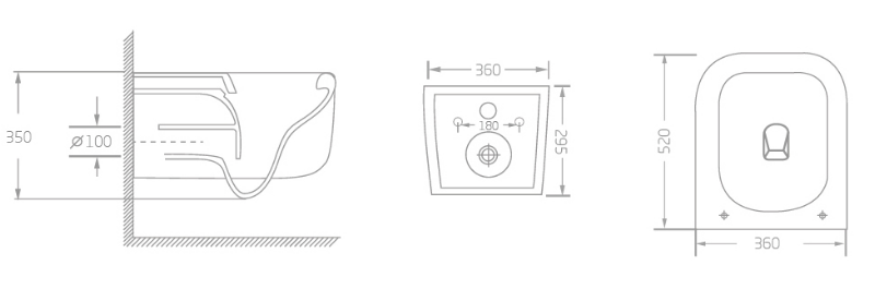 | Размер: | 520*360*350 мм | Тип: | Стена подвешно туалет |